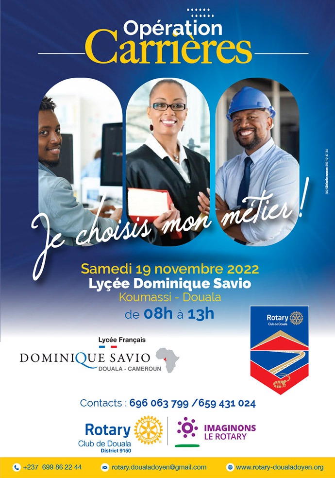 Execution (Nov 2022) – Once on the ground, we spent the first week contacting academic institutions and various individuals involved in personal development to set up in-person or virtual meetings. This was a challenge for a number of reasons (e.g. lack of response, scheduling conflicts, unreliable telecommunication network for virtual meetings, and poor transportation network to travel and meet in person). We managed to set up meetings in week 3 with 1) Madam MVondo Nadine from the Advanced School of Mass Communication (ASMC) responsible among other things for the Student Internship Program, and 2) Blaise Nyoti – a multi-dimension entrepreneur who offers personal development training sessions in Douala to youth and adults alike. We were also invited to the 17th annual Career Fair (for students in grades 11 and 12), organized by the Douala Rotary Club and Lycee Dominic Savio, to raise awareness on the importance of career planning and how mentors/coaches can help. Approximately 400 students from various local high schools attended the career fair. Thanks to Madam Nelly Bakang, President of Douala Rotary Club and members of her executive team (Mr. Keuko Richard and Mr. Yves Monkam) for the opportunities.
